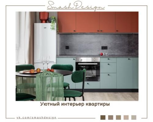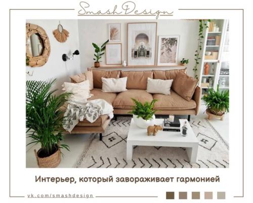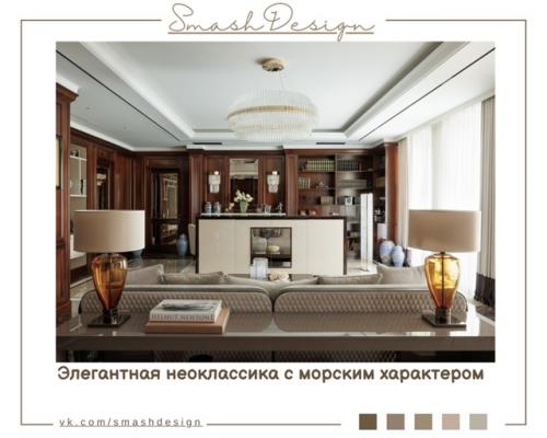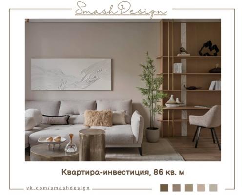 Цветовая палитра - нейтральные тона (белый, серый, беж, графит), дополненные акцентами: дерево, текстиль или яркие детали декора.